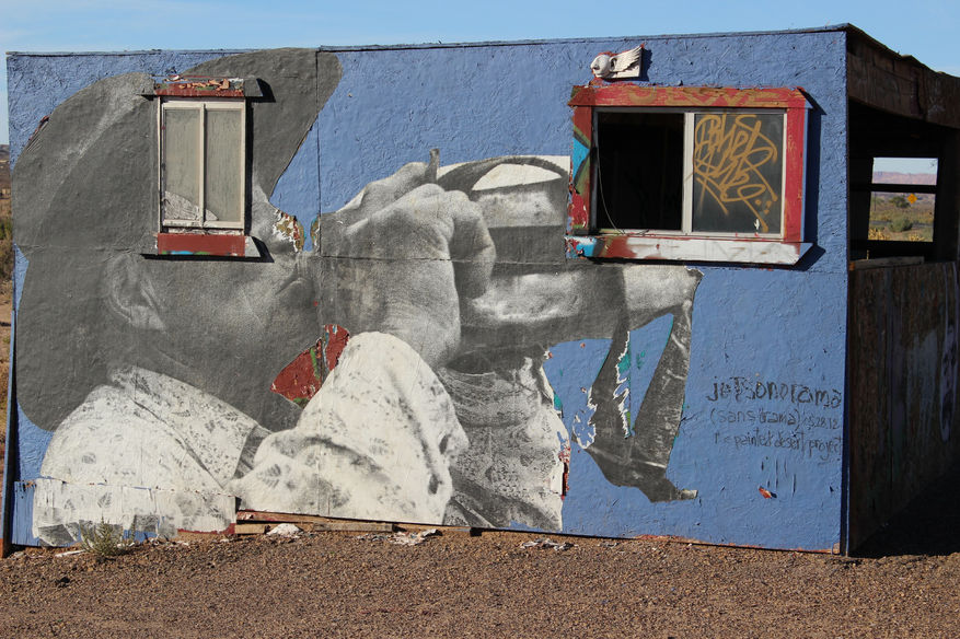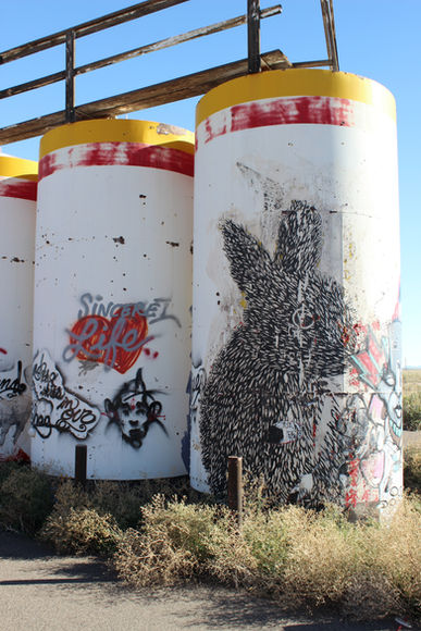 Roadside views encountered during my roadtrip from Arizona to Nebraska following the funeral of a dear friend. These views were found along a state highway between Flagstaff, Arizona and Kayenta, Arizona. What is amazing (at least to me!) is the unexpected adventure this portion of my roadtrip became. While driving, I passed some old silos and as I passed, I saw someone out photographing them. I turned my car around and went back to see what he was photographing (as there wasn't really anything around except for these silos). It turns out that there were actually two people shooting photographs of the murals painted on the silos, and there was an artist present actually painting a new mural on one of them. I took photos and briefly talked with another person photography, and I learned that this was part of a larger art project throughout northern Arizona called "The Painted Desert Project". A coalition of artists had/have banded together to "dress up" abandoned structures of all kinds in this part of the state. What became a momentary stop to be nosy about what the other photographer was shooting became an unexpected adventure for the rest of my trip through northern Arizona. As I continued driving, I tried to quickly (as I'm driving 55 miles per hour...our faster!) inspect ALL abandoned structures to determine if artwork had been added. Sometimes, I wouldn't see any as I approached, but I'd see it in my rearview mirror just after passing them. Numerous times, I had to turn my car around to go back to investigate further. And each time, I was rewarded with unexpected pleasure as I discovered the creativity left behind by the artists. Instead of a boring drive through mostly barren country, I instead found myself on a treasure hunt -- one in which I continually won prize after prize! :-) (Photos taken 10/13/2012)
